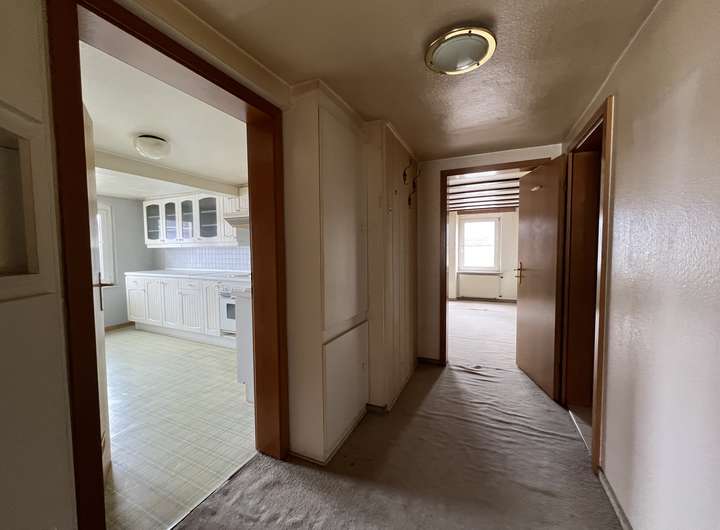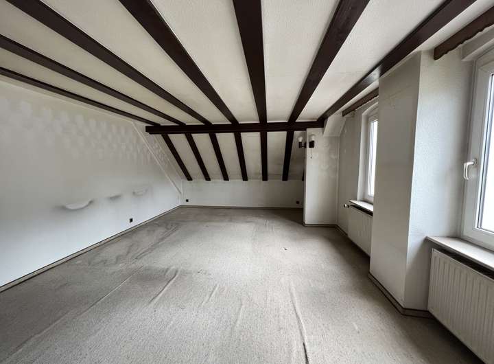 Die Wohnungen im Dachgeschoss und 2. Obergeschoss stehen leer. Die Wohnungen im Erdgeschoss und 1. Obergeschoss werden nach Absprache frei.