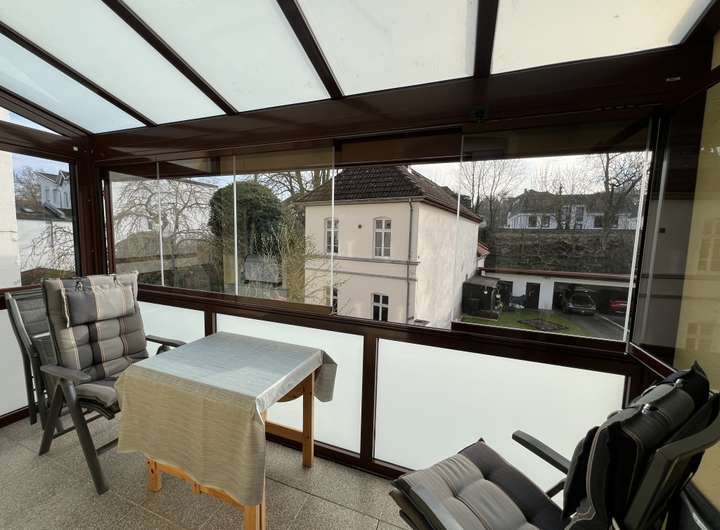Die beiden Wohnungen im 1. und 2. Obergeschoss sind gleich geschnitten, wobei die Wohnung im 1. Obergeschoss zusätzlich über einen schönen Balkon verfügt. Dieser ist durch eine schicke Glasumrandung geschützt und bietet einen herrlichen Blick auf den Garten.