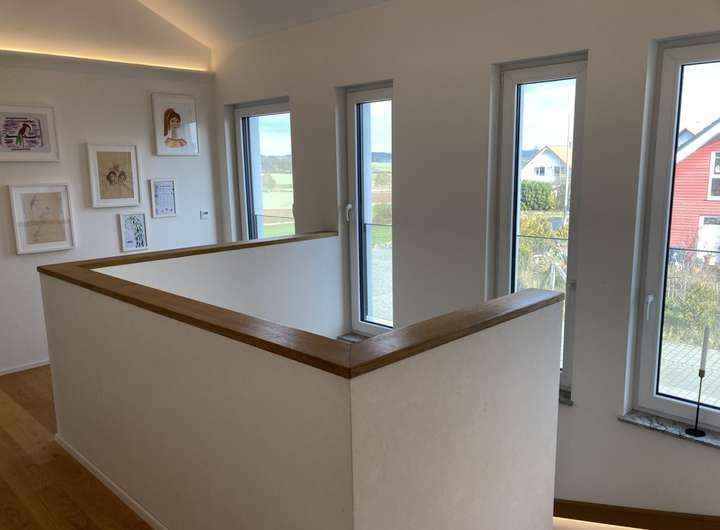 Das Obergeschoss erwartet uns mit dem privaten Familienbereich eine offene Galerie sorgt für ein großzügiges Raumgefühl.