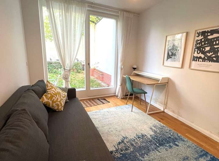 Willkommen in Ihrem stilvoll möblierten Rückzugsort im charmanten Bungalow-Stil – mit separatem Eingang, privatem Garten und viel Wohnkomfort auf einer Ebene.