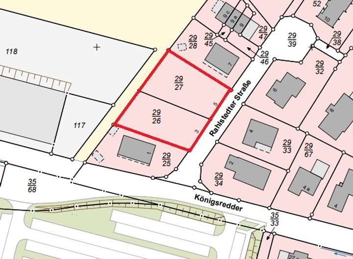 Das angebotene Grundstück befindet sich in in der Rahlstedter Straße 3 und 5, einer ruhigen Sachgasse, die sich in der Nähe des Jachthafens befindet.
