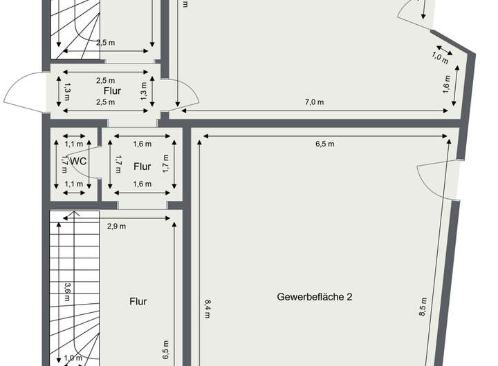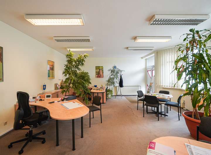 - EG: Zwei große Gewerbeflächen mit separatem Zugang von Innen sowie von Außen, WC-Anlage und Lagermöglichkeit.