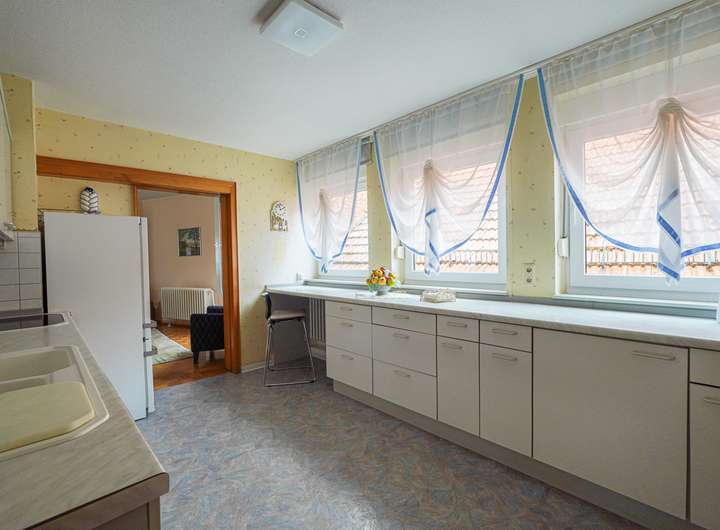 - DG: Wohnzimmer, drei Schlafzimmer, Küche mit Speisekammer und ein Tageslichtbad.