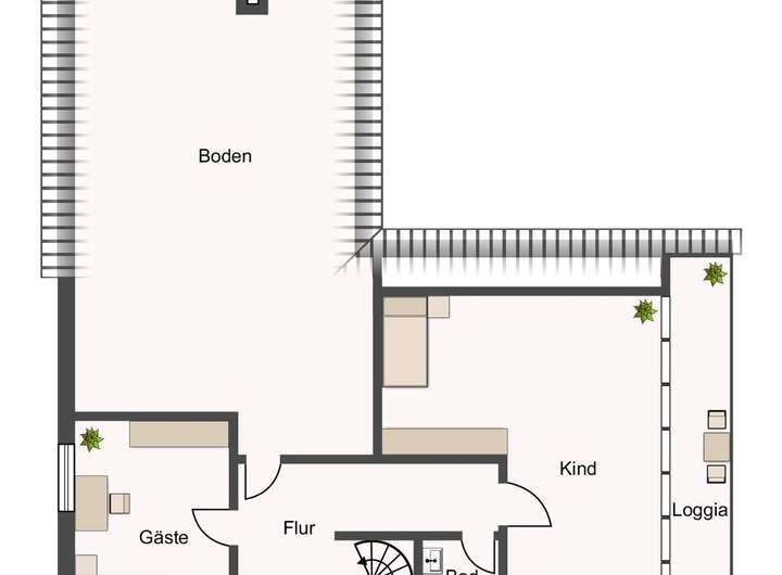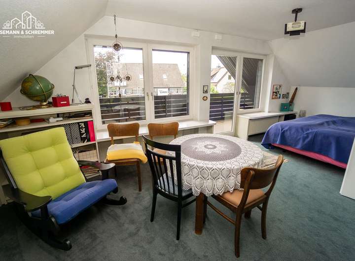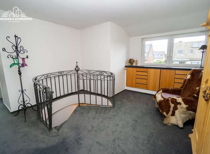 Im Dachgeschoss gibt es zwei weitere Zimmer (eines mit Loggia), ein Bad sowie einen ausgebauten Bodenraum mit integrierter Bar – ideal als Party- oder Hobbyraum.