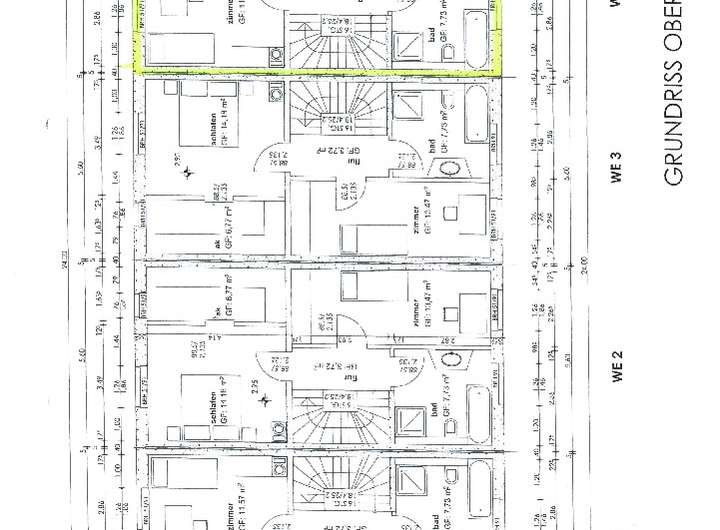 OG: Flur, drei Schlafzimmer, Vollbad mit Fenster, ca. 51,45 m² Wfl.