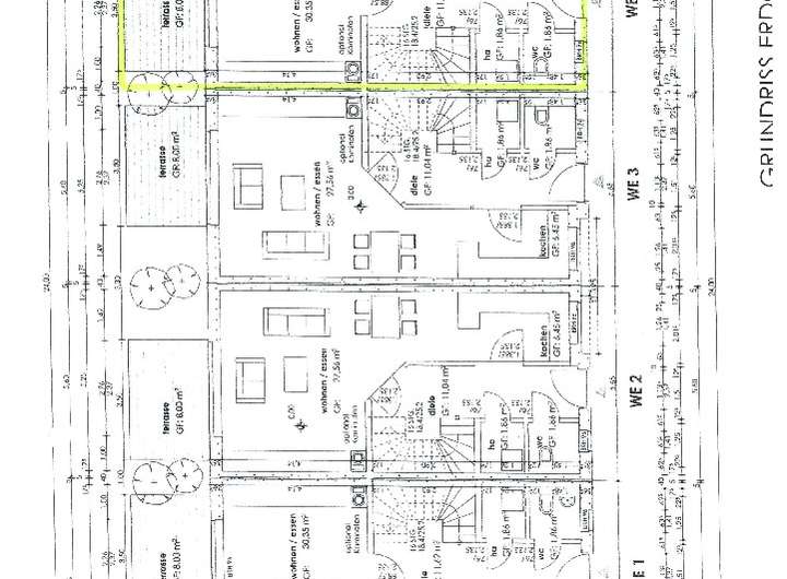 EG: Eingangsdiele, Gäste-WC, HWR, Küche mit EBK, Wohn-und Esszimmer mit Ausgang zur Terrasse, ca. 54,8 m² Wfl.