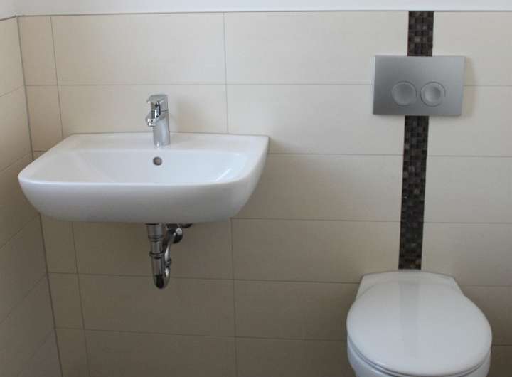 Über die Eingangsdiele gelangt man in den relativ offen gestalteten Ess- und Küchenbereich mit Einbauküche. Dem schließt sich das Wohnzimmer mit Zugang auf die in Südwestrichtung liegende Terrasse an. Zudem befindet sich im EG ein Gäste- WC und ein Hausanschlussraum in dem alle Medien zusammenlaufen.