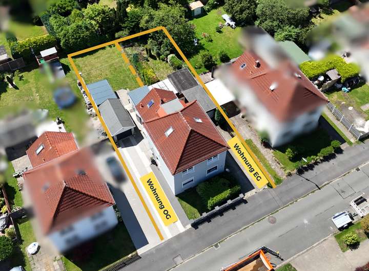 Das Haus verfügt über zwei abgeschlossene Wohneinheiten mit jeweils eigenem Eingang, eigener Einfahrt und separatem Gartenbereich.