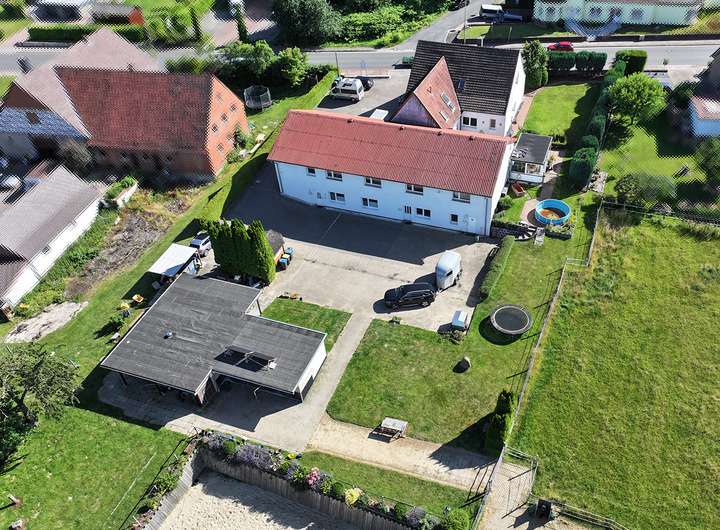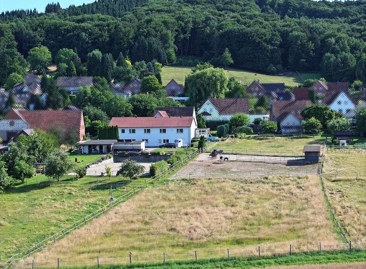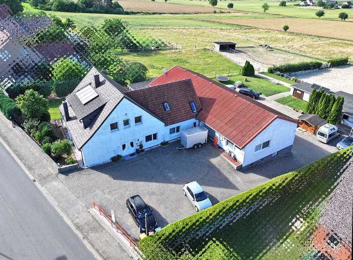Sie suchen das Besondere? Eine Kombination aus großzügigem Wohnen, praktischer Gewerbefläche und Platz für Ihre Pferde? Dann ist dieses vielseitige Immobilienensemble genau das Richtige für Sie!