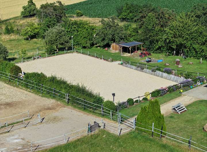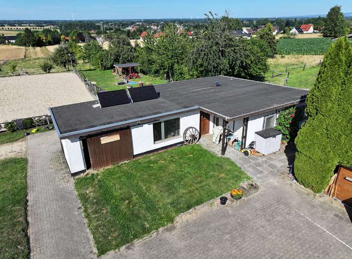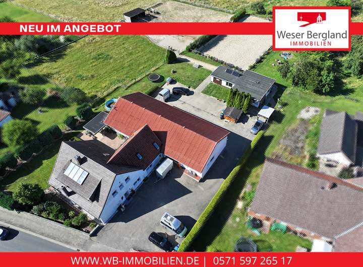 Ein absolutes Highlight ist das große Grundstück mit Reitplatz und Pferdeboxen, das Pferdeliebhabern das Herz höher schlagen lässt. Hier können Sie Wohnen, Arbeiten und Ihre Leidenschaft für Tiere perfekt vereinen – und das in zentraler Lage von Hille-Oberlübbe, mit guter Anbindung an das Umland. Die an das Grundstück angrenzende Wiesenfläche, ca. 8.900 m², kann bei Bedarf von den Nachbarn angepachtet werden.