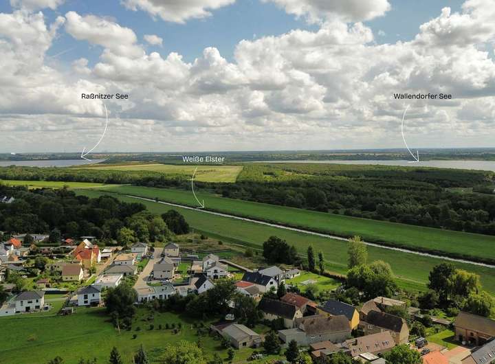 Besonders attraktiv ist die Lage des Grundstücks, da die beiden Seen Raßnitzer See und Wallendorfer See direkt an den Ort grenzen.