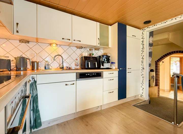 Die Hauptwohnung im Erdgeschoss ist barrierefrei gestaltet und ermöglicht komfortables, ebenerdiges Wohnen. Großzügig geschnittene, lichtdurchflutete Räume schaffen in allen Einheiten ein angenehmes Wohnambiente. Drei moderne Einbauküchen sind im Angebot enthalten und unterstreichen die sofortige Bezugsbereitschaft des Hauses.