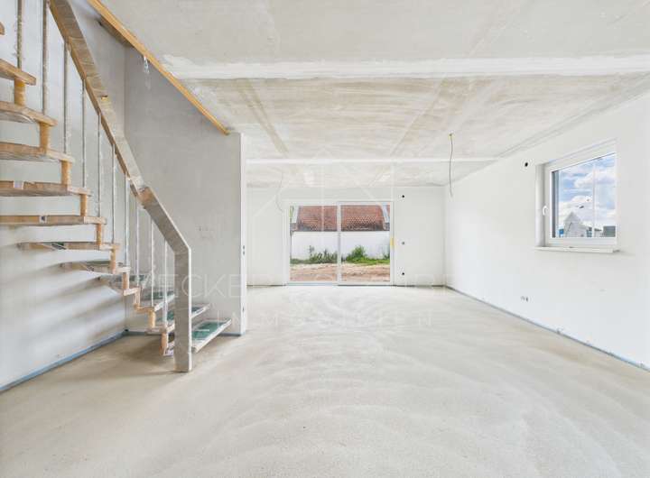 - Offener Wohn-/Ess-/Kochbereich mit großer Schiebetür zur zukünftigen Terrasse