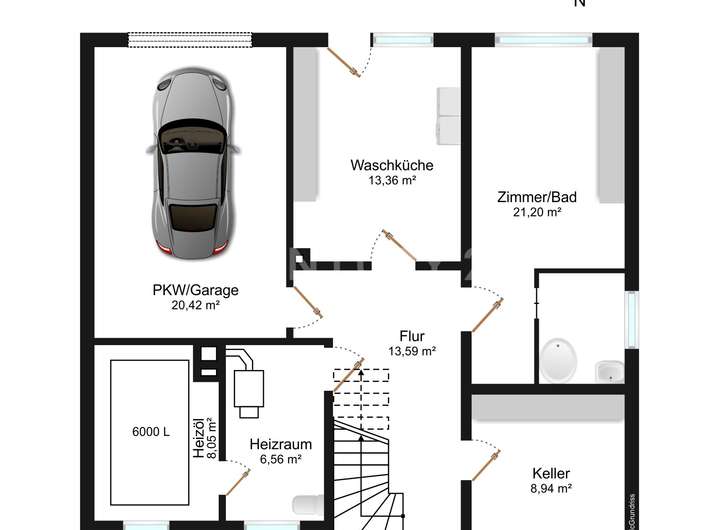 - Garage mit Zugang zum Haus