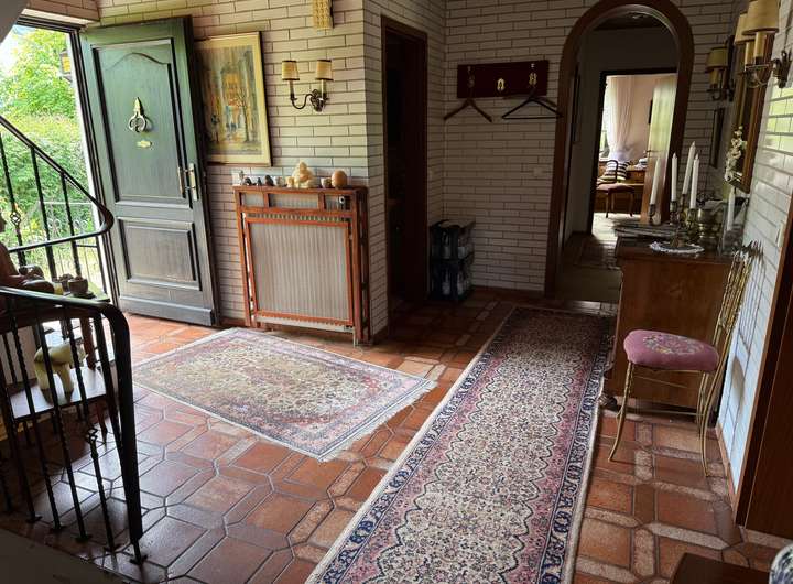 Die Immobilie verfügt über eine hochwertige Ausstattung, die aus dem 80er/90er sind. Der gesamte Wohnbereich sowie alle Bäder sind gefliest, was für ein gepflegtes und großzügiges Raumgefühl sorgt. Die Schlafräume sind mit Teppichböden ausgestattet und strahlen dadurch besondere Wohnlichkeit aus. Von der Küche und dem Wohnzimmer aus gelangen Sie direkt auf die sonnige Terrasse und in den weitläufigen Garten – ideal für entspannte Stunden im Freien und repräsentatives Wohnen mit Stil. Über alles weitere verschaffen Sie sich Ihr eigenes Bild.