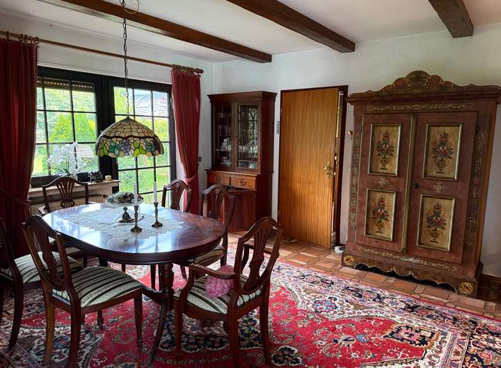Dieses außergewöhnliche Anwesen überzeugt durch eine durchweg exklusive Ausstrahlung – von der repräsentativen Einfahrt mit Tor über großzügige Parkmöglichkeiten direkt vor dem Haus bis hin zur stilvollen Innenarchitektur. Auf rund 6 Zimmern und 3 Bädern erwartet Sie eine beeindruckende Raumaufteilung mit Großzügigkeit. Das riesige Wohnzimmer, einem Kaminzimmer und angrenzendem Essbereich bildet das Herzstück des Hauses und schafft ein Wohngefühl auf höchstem Niveau. Das Anwesen befindet sich in einem gepflegten, jedoch teilweise sanierungsbedürftigen Zustand – eine hervorragende Gelegenheit, eigenen Stil und Vorstellungen zu verwirklichen, ohne auf den besonderen Charme des Hauses verzichten zu müssen.