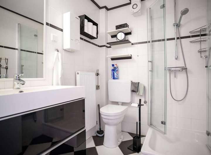 - Innenliegendes, modernes Badezimmer mit Dusche