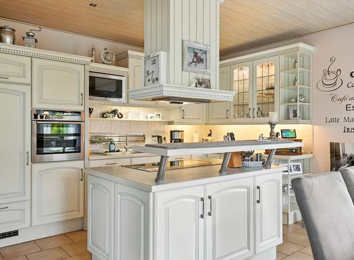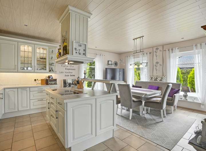 Im Mittelpunkt des Hauses steht die offene Wohnküche, die nahtlos in den Wohn- und Essbereich übergeht und so das Herzstück des täglichen Lebens bildet. Hier entfaltet sich ein lebendiger Mittelpunkt des Familienlebens – ein Ort für gemeinsames Kochen, Gespräche und entspannte Momente, sei es im Alltag oder bei besonderen Anlässen. Direkt angrenzend lädt der lichtdurchflutete Wintergarten dazu ein, den Blick ins Grüne zu genießen – zu jeder Jahreszeit – und erweitert den Wohnbereich um einen hellen Rückzugsort mit naturnaher Atmosphäre.
