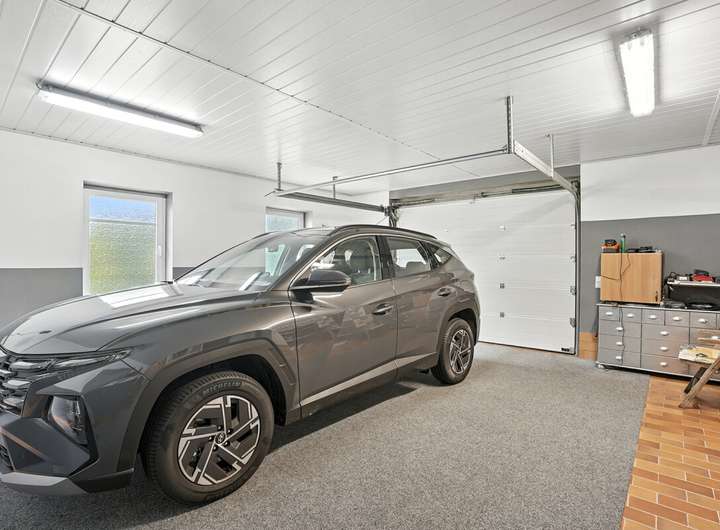 Komfortabel wird es auch im Alltag: Die integrierte Garage mit direktem Zugang ins Haus bietet Schutz bei jedem Wetter. Der gepflegte Garten rundet das Gesamtbild ab – uneinsehbar, naturnah und mit freiem Blick ins Grüne – ein wahres Paradies für Naturliebhaber und Ruhesuchende.