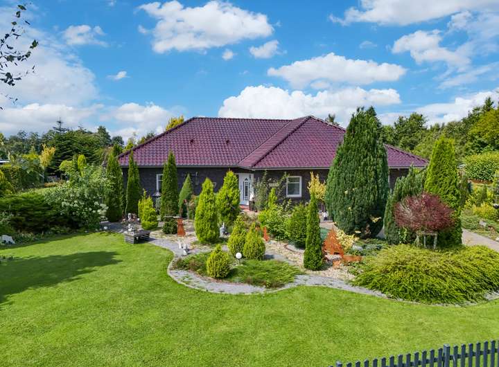 Dieser moderne Bungalow aus dem Jahr 2007 bietet auf ca. 178 m² Wohnfläche ein durchdachtes Raumkonzept mit klarer Architektur und lichtdurchfluteten Wohnbereichen. Das ca. 2.834 m² große, liebevoll gepflegte Grundstück schafft eine naturnahe Umgebung mit viel Privatsphäre und hohem Wohlfühlfaktor.