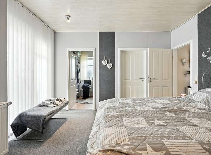 Der separat gelegene Schlafbereich überzeugt durch ein eigenes Ankleidezimmer und ein komfortables Bad en Suite – ein geschützter Rückzugsort, der Ruhe und Privatsphäre garantiert.