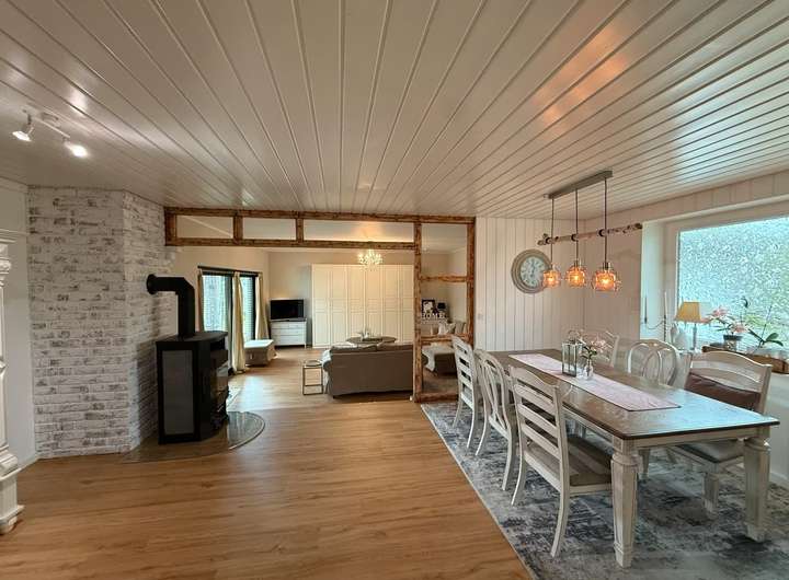 - geräumiger Wohn-/ Essbereich mit Kaminofen