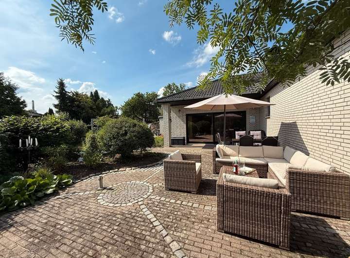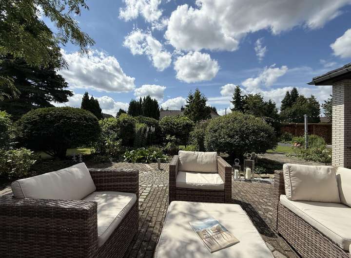 Dieses wunderschöne Einfamilienhaus wurde 1979 im Bungalowstil massiv erbaut und verklinkert. Es präsentiert sich in einem sehr gepflegten Zustand und befindet sich auf einem ca. 966 m² großen Grundstück in ruhiger, bevorzugter Randlage, eingebettet in einen liebevoll angelegten Garten mit uneinsehbarer Terrasse in Südwest Ausrichtung.