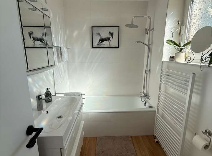 - Gästebad mit Badewanne / Duschoption und Fenster