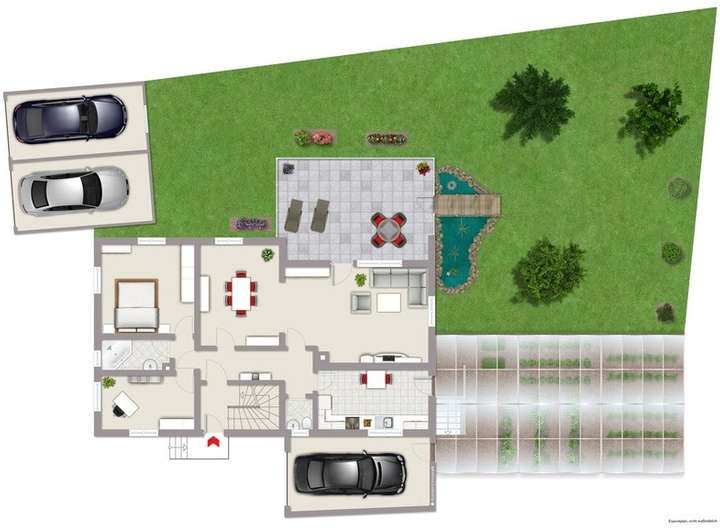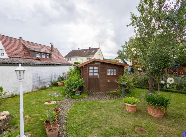 Das 653 m² große Grundstück ist liebevoll angelegt und bietet neben Zier- und Nutzgartenflächen auch einen idyllischen Gartenteich sowie ein außergewöhnliches großes Gewächshaus. Dieses eignet sich ideal für den Anbau von Kräutern und Gemüse sowie als optimale Überwinterungsmöglichkeit für mediterrane Pflanzen.