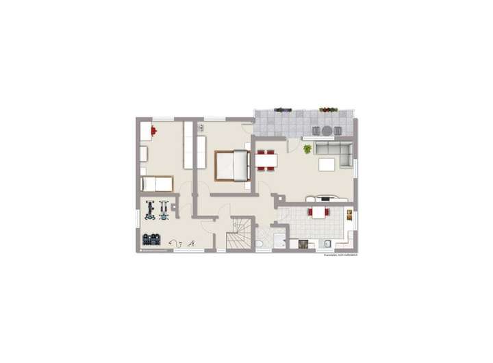 Im Obergeschoss wurde auf Basis einer genehmigten Nutzungsänderung aus dem Jahr 2019 eine ansprechende Ferienwohnung eingerichtet. Diese Raumaufteilung ermöglicht flexible Nutzungsmöglichkeiten.