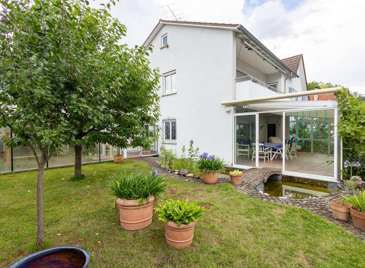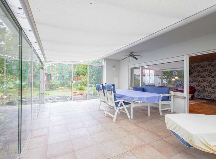 Insgesamt bietet das Haus ca. 190 m² Wohnfläche. Ein weiteres Highlight ist der lichtdurchflutete Wintergarten aus dem Jahr 1994, der den Wohnraum auf angenehme Weise ergänzt. Das Haus überzeugt durch einen großen Keller mit viel Abstellmöglichkeiten, eine Doppelgarage aus 1995 sowie eine weitere Einzelgarage mit vorgelagertem, großzügigen Stellplatz.