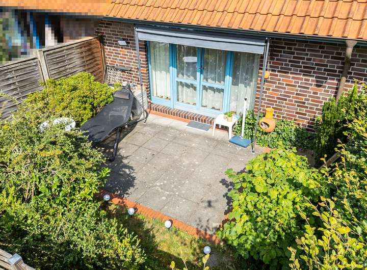 Der Garten ist vollständig eingefriedet und pflegeleicht gestaltet. Die angrenzende Terrasse lädt zum Verweilen ein und schafft einen harmonischen Übergang zwischen Wohnraum und Außenbereich. Zum Haus gehört ein Carport mit angrenzendem Geräteraum, der zusätzlichen Stauraum für Fahrräder, Gartengeräte oder Werkzeuge bietet.