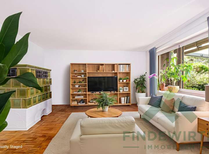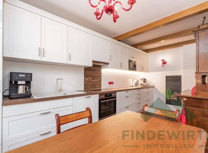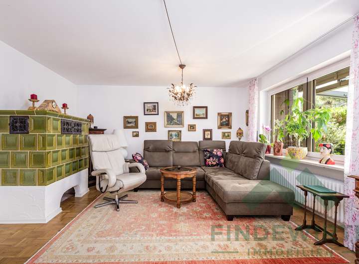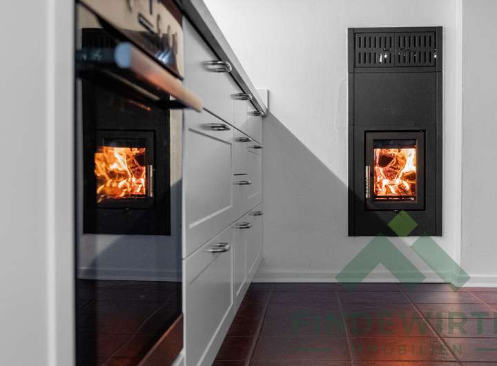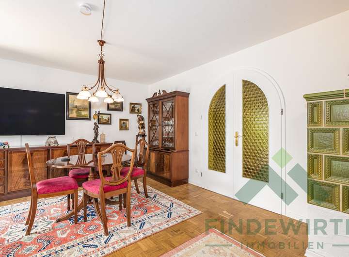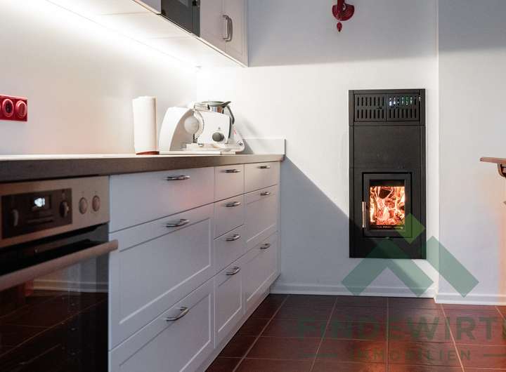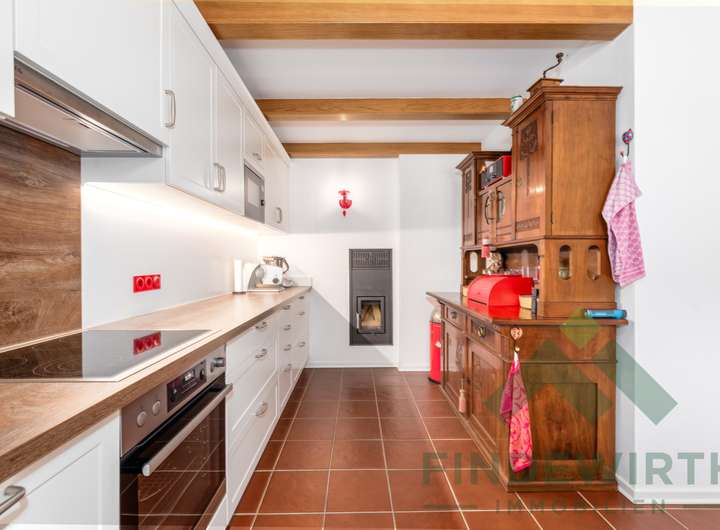 • Wohnambiente: Hochwertiges Echtholzparkett und ein klassischer Kachelofen, der komfortabel über die Küche beheizt wird, schaffen eine warme, gemütliche Atmosphäre – ideal zum Entspannen nach einem langen Arbeitstag.