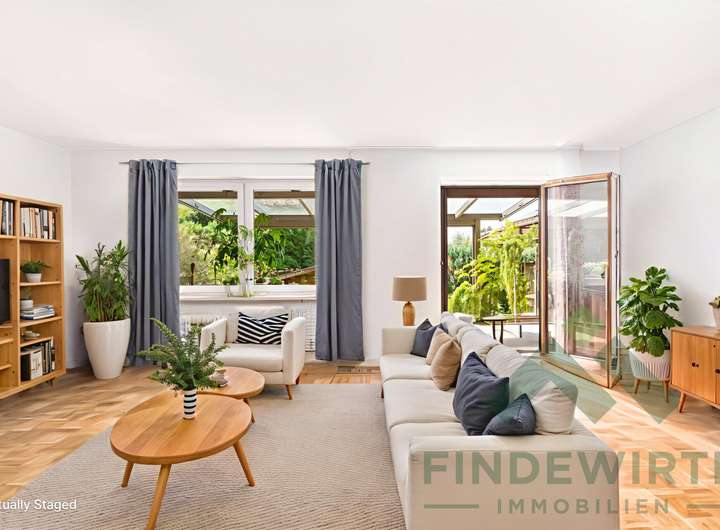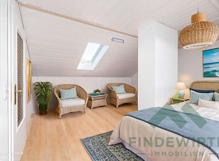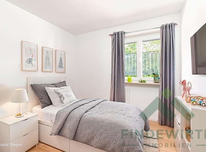 Zur besseren Veranschaulichung des Nutzungspotenzials wurden einzelne Räume dieses Objekts digital bearbeitet und virtuell möbliert („virtuelles Staging“). Die dargestellten Einrichtungsgegenstände sind nicht Bestandteil des Angebots. Die tatsächliche Beschaffenheit, Ausstattung und Möblierung des Objekts können von den gezeigten Visualisierungen abweichen
