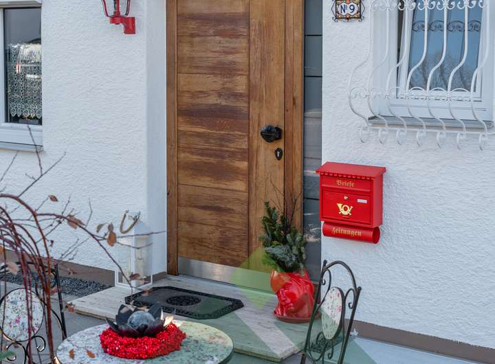 • Eingangsbereich: 2023 vollständig neu gestaltet – inklusive moderner Beete, frischer Pflasterung und einem dezent integrierten, praktischen Mülltonnenplatz.