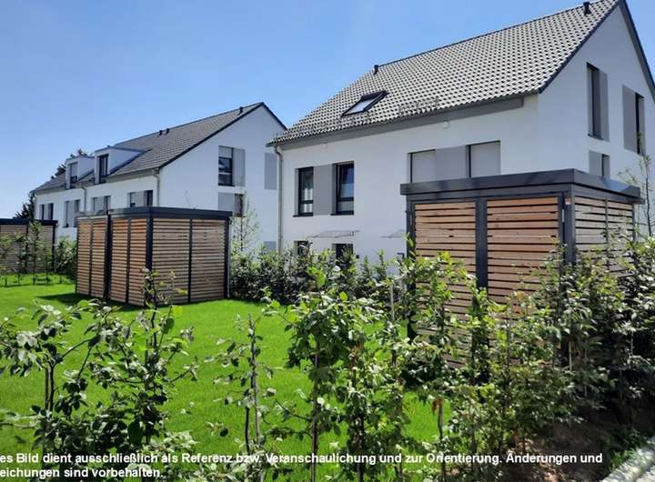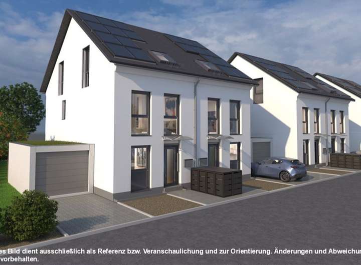 Das ausgeklügelte Wärmekonzept garantiert durch die Beheizung aller Doppelhaushälften mittels Infrarotheizpaneele sowie die Warmwassererzeugung über Wärmepumpen neben dem KfW-40-Standard auch in Zukunft überschaubare Heizkosten. Photovoltaikanlagen für eigene Stromproduktion runden die Energieeffizienz der Gebäude ab. Die wesentlichen Daten und Fakten auf einen Blick: + Großzügige Doppelhaushälften inkl. Grundstücksanteil und angelegten Außenanlagen + Terrasse und Gartenanteil sowie ein Stellplatz und eine Garage je Haus sind im Preis inkludiert + Offene Wohnküche mit fließendem Übergang zum großzügigen Wohn- & Esszimmer mit knapp 35 m² Wohnfläche und großer Fensterfront + Geflieste Diele mit Garderobennische sowie ein Gäste-WC im Eingangsbereich + Jeweils zwei Schlafzimmer in Obergeschoss und Dachgeschoss mit großen, bodentiefen Fenstern für helle & freundliche Räume mit einer Größe zwischen 13m² und 17m² + Das Badezimmer im Obergeschoss ist dank Doppelwaschbecken, Badewanne und bodengleich begehbarer Dusche bereits voll ausgestattet sowie komplett gefliest + Hauswirtschaftsraum mit Anschlüssen für Waschmaschine & Trockner ist praktischerweise direkt vom Bad aus begehbar + Großer Abstellraum im 2. OG ist optional gegen Aufpreis auch als zusätzliches Duschbad oder als großer Hauswirtschaftsraum erhältlich + Dachboden mit ca. 20 m² als geräumige Abstellfläche ausgebaut „Stein auf Stein" gebaut – Massivbauweise in Kalksandstein + Effizienzhausstandard EH 40 + Optimale Wärme- und Schalldämmung inkl. Wohnraumlüftung + Günstige Nebenkosten durch ein hocheffizientes und kostensparendes Energiekonzept