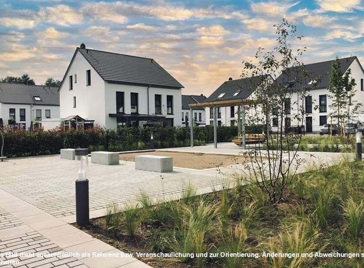 Das ausgeklügelte Wärmekonzept garantiert durch die Beheizung aller Doppelhaushälften mittels Infrarotheizpaneele sowie die Warmwassererzeugung über Wärmepumpen neben dem KfW-40-Standard auch in Zukunft überschaubare Heizkosten. Photovoltaikanlagen für eigene Stromproduktion runden die Energieeffizienz der Gebäude ab. Die wesentlichen Daten und Fakten auf einen Blick: + Großzügige Doppelhaushälften inkl. Grundstücksanteil und angelegten Außenanlagen + Terrasse und Gartenanteil sowie ein Stellplatz und eine Garage je Haus sind im Preis inkludiert + Offene Wohnküche mit fließendem Übergang zum großzügigen Wohn- & Esszimmer mit knapp 35 m² Wohnfläche und großer Fensterfront + Geflieste Diele mit Garderobennische sowie ein Gäste-WC im Eingangsbereich + Jeweils zwei Schlafzimmer in Obergeschoss und Dachgeschoss mit großen, bodentiefen Fenstern für helle & freundliche Räume mit einer Größe zwischen 13m² und 17m² + Das Badezimmer im Obergeschoss ist dank Doppelwaschbecken, Badewanne und bodengleich begehbarer Dusche bereits voll ausgestattet sowie komplett gefliest + Hauswirtschaftsraum mit Anschlüssen für Waschmaschine & Trockner ist praktischerweise direkt vom Bad aus begehbar + Großer Abstellraum im 2. OG ist optional gegen Aufpreis auch als zusätzliches Duschbad oder als großer Hauswirtschaftsraum erhältlich + Dachboden mit ca. 20 m² als geräumige Abstellfläche ausgebaut „Stein auf Stein" gebaut – Massivbauweise in Kalksandstein + Effizienzhausstandard EH 40 + Optimale Wärme- und Schalldämmung inkl. Wohnraumlüftung + Günstige Nebenkosten durch ein hocheffizientes und kostensparendes Energiekonzept