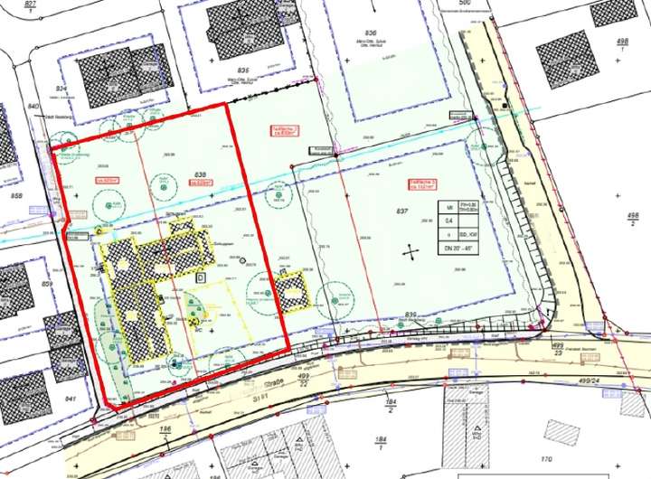 Es ist auch eine Teilung des Gesamtgrundstücks in 2 Teilflächen mit ca. 827 m² möglich.