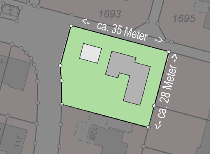 Das eingewachsene Grundstück mit seinen ca. 35 x 28 Metern ist nahezu rechteckig geschnitten und nach Südwesten ausgerichtet, die Zufahrt erfolgt von Westen über eine ruhige Anwohnerstraße. Das Grundstück ist sofort verfügbar, das Haus bereits ausgeräumt und nicht vermietet.