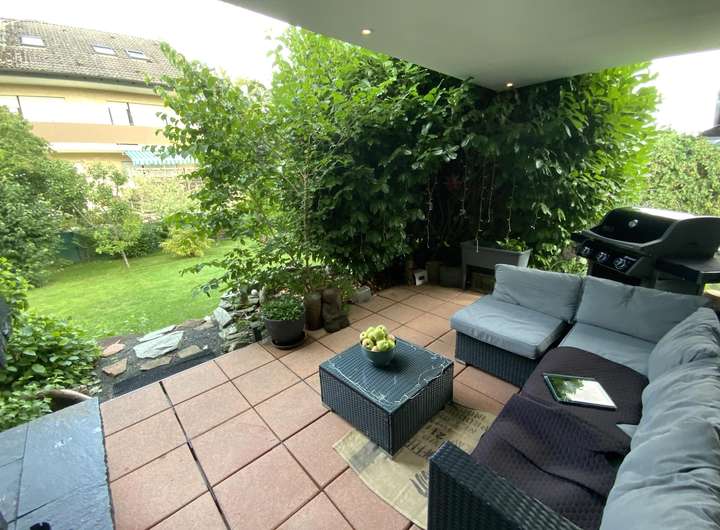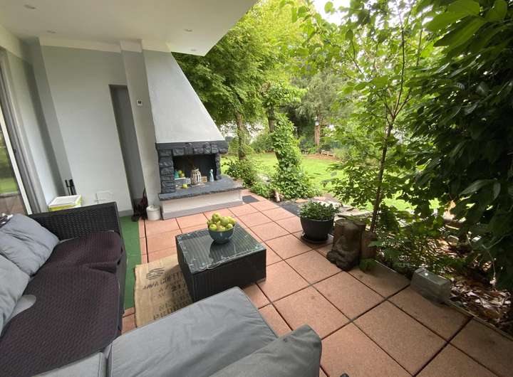Die Terrasse mit offenem Kamin und ein liebevoll angelegter Gartenbereich laden zum Relaxen ein.