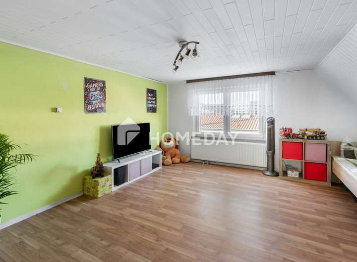 Mit einer Wohnfläche von ca. 145 Quadratmetern, verteilt auf Erd- und Dachgeschoss, bietet dieses Haus vielfältige Möglichkeiten zur individuellen Gestaltung.