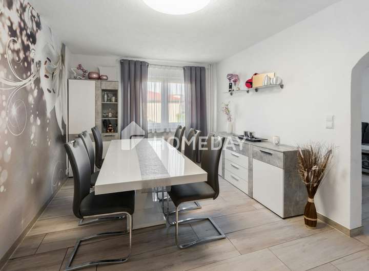 Schon beim Betreten des Hauses spürt man die gepflegte und einladende Atmosphäre. Das 1948 in massiver Bauweise errichtete Gebäude wurde kontinuierlich modernisiert, um zeitgemäßen Wohnkomfort zu bieten. 2019 erfolgten umfangreiche Sanierungsmaßnahmen, darunter die Erneuerung der Elektrik, der Fenster und des Dachs inklusive neuer Dämmung. Auch Wände und Fußböden wurden kürzlich modernisiert.