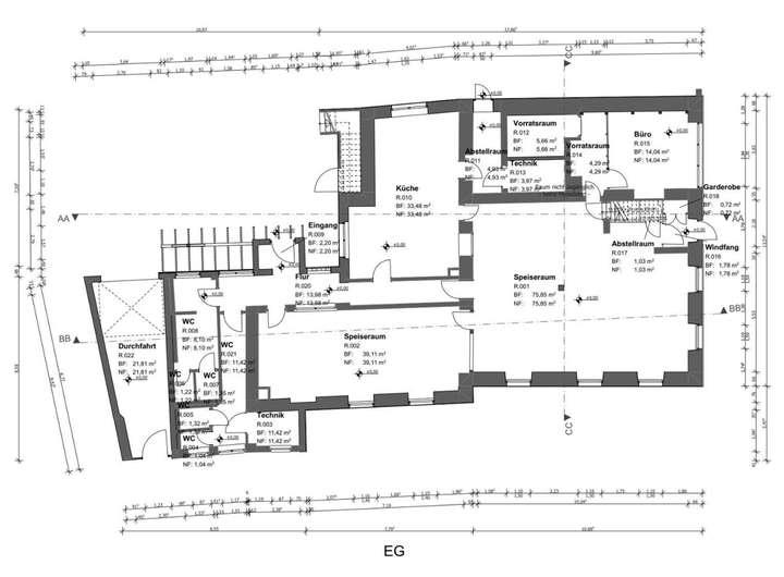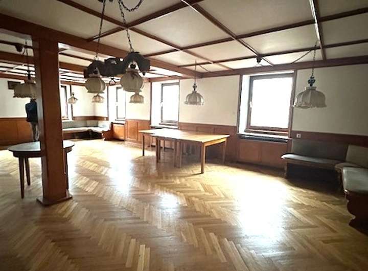 EG: Gastroraum und Nebenraum, 2 WC Anlagen, erweiterbar mit Duschen, eine Küche, ein Büro. Das EG hat zwei Eingänge.