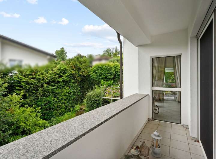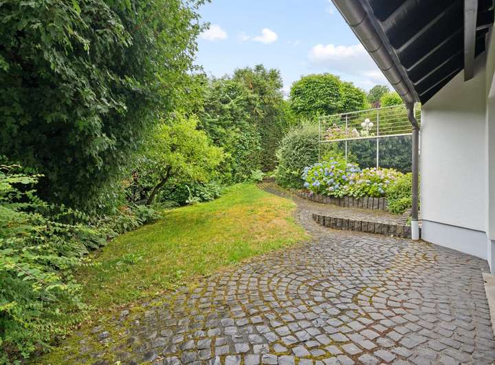 Der Garten ist von der Terrasse aus erreichbar und durch Sichtschutz gut abgeschirmt – ideal für Privatsphäre.