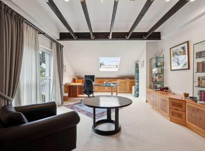 Ebenfalls auf dieser Ebene befindet sich ein Gästezimmer mit Zugang zur Terrasse, zuletzt als Pflegezimmer genutzt. Es kann flexibel als Büro, Gäste- oder Hobbyraum verwendet werden.