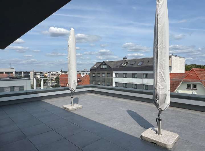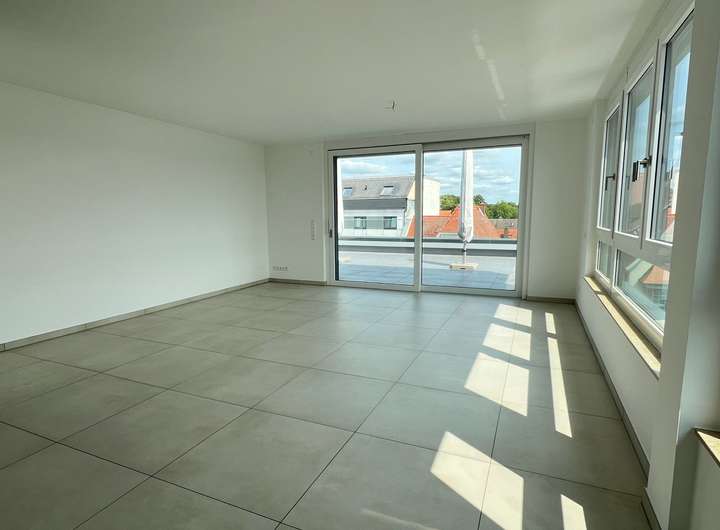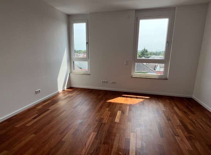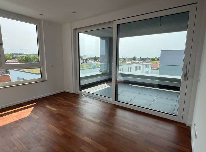 Die helle und geräumige 4-Zimmerwohnung verfügt über eine tolle Ausstattung. Die Wohnräume sowie der Eingangsbereich sind mit einem hochwertigen Parkettboden versehen. Der helle Wohnbereich verfügt über eine große Fensterfront. Die große Terrasse lädt zum Verweilen ein und bietet Ihnen zusätzlich zwei Sonnenschirme. Vom Eingangsbereich erreichen Sie den großzügigen Wohnbereich mit offener Küche, die Schlafzimmer sowie die Bäder. Ein Bad verfügt über eine ebenerdige Dusche sowie Waschmaschinenanschluss. Das Hauptbad verfügt über eine Badewanne sowie zwei Waschbecken. Für ein besonders angenehmes Raumklima sorgt die vorhandene Fußbodenheizung. Sie verleiht der Wohnung in der kalten Jahreszeit eine angenehme Raumtemperatur. Die elektrischen Rollläden an allen Fenstern sorgen für Privatsphäre.