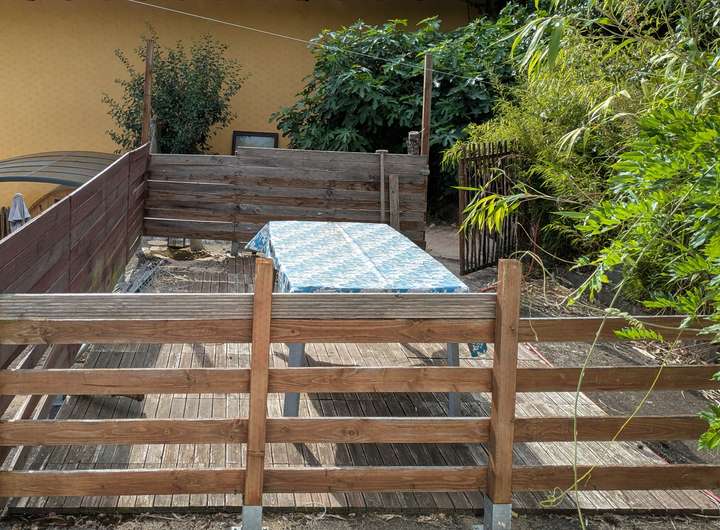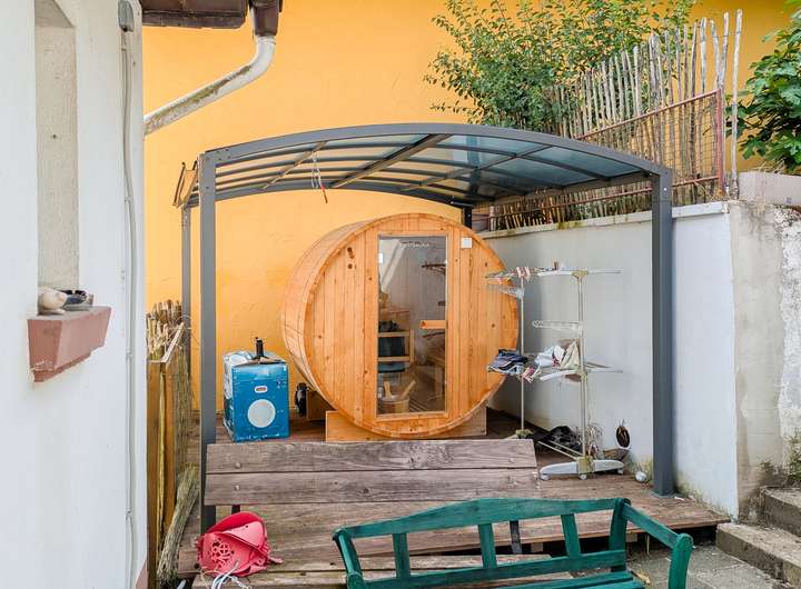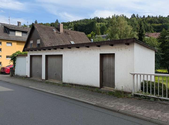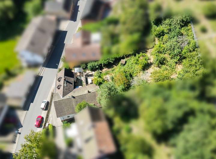Komplettiert wird unser Angebot von dem großen Hang- / Gartenbereich hinter dem Haus mit schöner Aussicht und Süd-Lage – hier lässt sich das eine oder andere Plätzchen zum Chillen, Feiern oder für einen Nutzgarten anlegen – und hier befinden sich auch ein Terrassendeck sowie die kleine Außensauna. Komplettiert wird das Ganze von dem auf der anderen Straßenseite liegende Garagentrakt mit Platz für 2 Fahrzeuge und einem großen Bereich, nutzbar z.B. für eine Werkstatt.