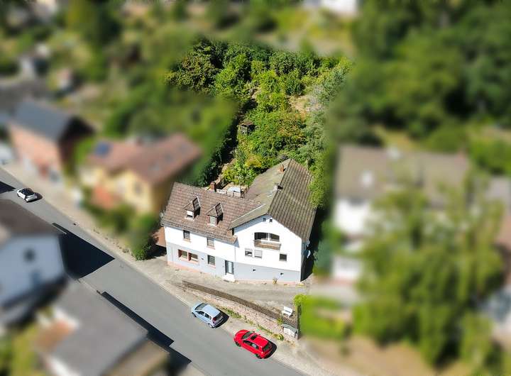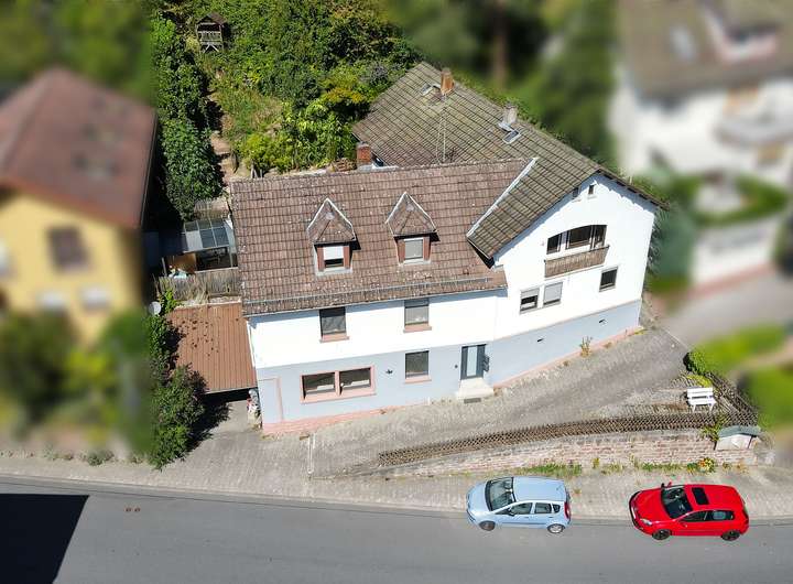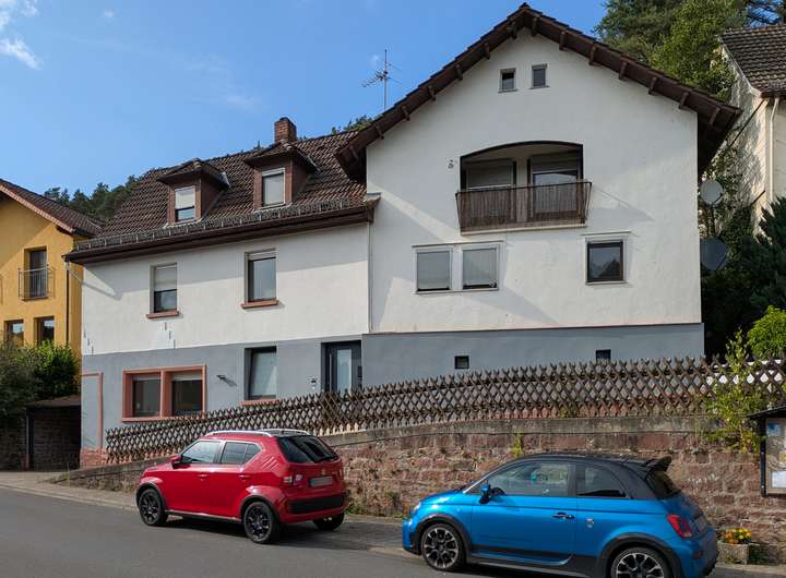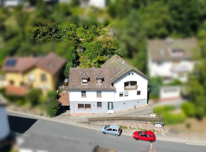 Das Haus besteht aus 2 Wohnungen, 144 bzw. 85 qm groß in Erd- / Obergeschoss jeweils mit Terrassenanteil bzw. Balkon. Das zur Straße freistehende Untergeschoss, hier befindet sich auch der Hauseingang, beherbergt diverse Kellerräume, ein wohnlich ausgebautes Zimmer (Teil der einen Wohnung und früher mit separatem Zugang) und einen Pkw-Abstellplatz.