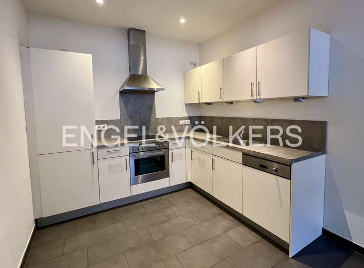 Im Eingangsbereich befindet sich auf der linken Seite die offene Küche mit stilvoller Einbauküche. Zur rechten Seite führen wenige Treppenstufen zum offenen Wohnzimmer. Dahinter befindet sich das Schlafzimmer, ein Abstellraum mit Waschmaschinenanschluss und das großzügige Badezimmer mit Badewanne. In der Einbauküche finden Sie alle üblichen Gerätschaften wie Kühlschrank, Ofen, Herd mit Dunstabzugshaube und Geschirrspülmaschine vor.