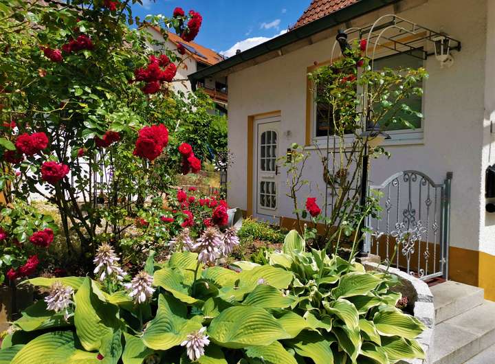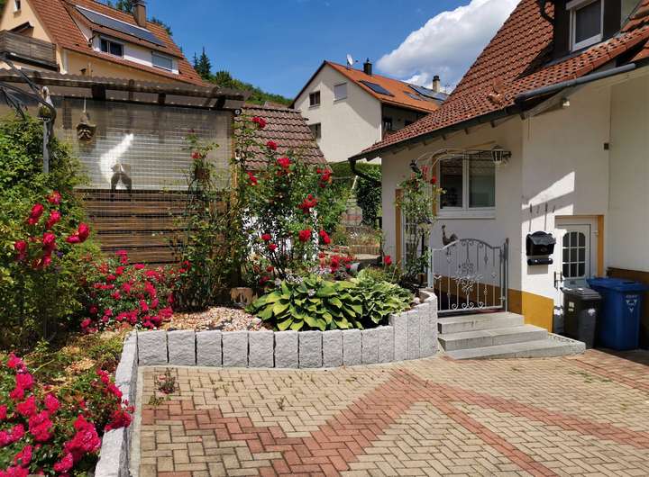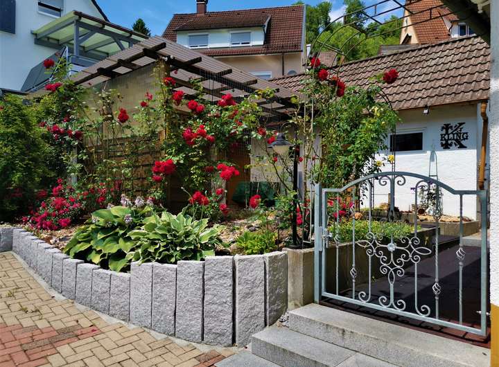 - attraktiv angelegter Außenbereich und Garten mit ansprechender Bepflanzung
